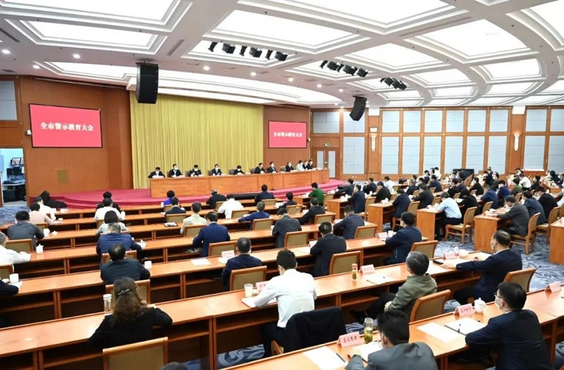 4月22日,全市警示教育大会召开。市委书记张兵出席并讲话,强调要以案为鉴,以案明纪,警钟长鸣,进一步坚定廉洁从政的自觉性和坚定性,努力营造山清水秀、海晏河清的政治生态,为加快建设共同富裕典范城市和社会主义现代化先行市贡献力量。
