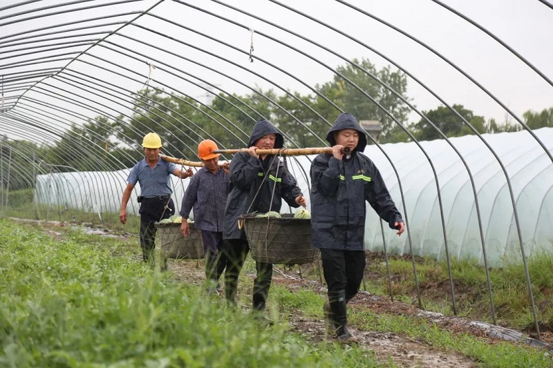 为切实保障群众生命财产安全,平湖市各级纪检监察干部立足职能定位、加强监督检查的同时,深入一线,争分夺秒、全力以赴,共同参与抗台。图为该市纪检监察干部冒雨帮助农户抢收西瓜2000余斤,最大限度减少农户损失。