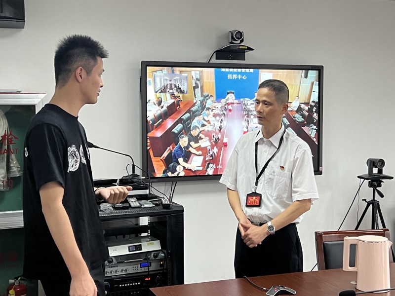海盐县纪委县监委迅速组建7个防汛防台督查组,采取随机抽查、明察暗访、实地督查等形式,聚焦组织领导、值班值守、应急部署等首要环节,深入9个镇(街道)防汛防台一线开展督查,现场督促问题整改。图为防汛防台督查组在应急指挥中心对全县指挥调度工作进行监督检查。