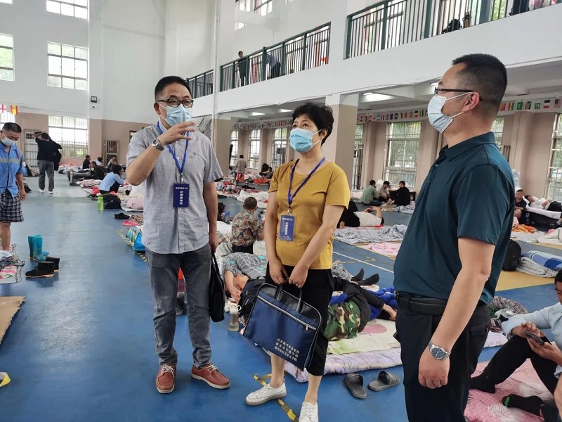 “梅花”来袭,南湖区纪委区监委聚焦防汛防台工作要求,闻令而动、深入一线,紧盯人员转移、物资储备、值班值守等重点开展专项督查,确保防汛防台工作组织有序、保障有力、政令畅通。图为纪检监察干部赴南湖区东栅街道东栅中学集中安置点了解人员安置情况。