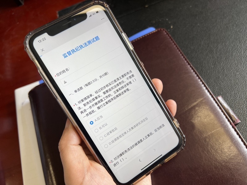 “每周我们都会抽空开展自学和交流,月末需要阶段测试。今年4月到6月我一直在点上办案,手机上有‘指尖测试’系统,指尖点点,在哪都能考试,对我们常要驻点办案的人来说,很方便。”