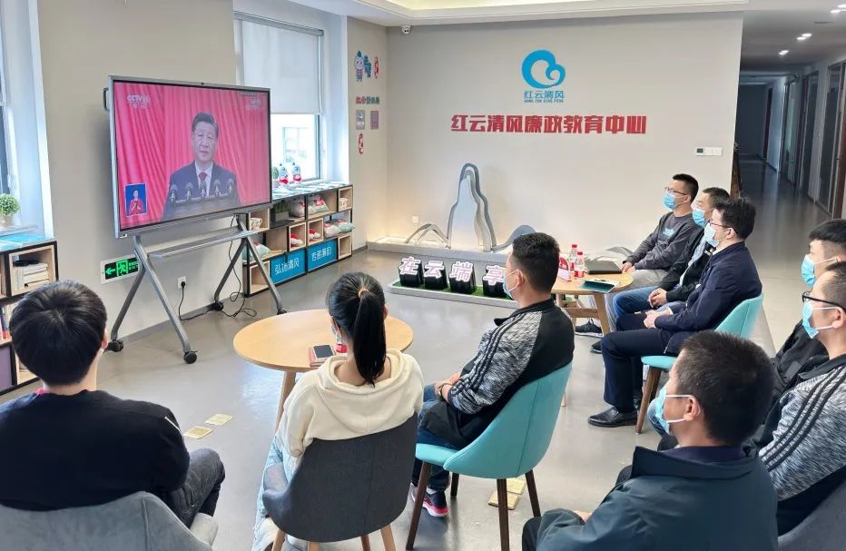 嘉善县纪委县监委组织纪检监察干部在“红云”清风廉政教育中心收看党的二十大开幕会直播。