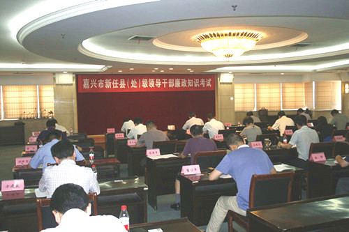 开展廉政知识考试工作,是我市对新任县(处)级领导干部开展岗位廉政教育的一个重要载体。2008年我市就在全省率先出台《嘉兴市新任县(处)领导干部廉政知识考试工作实施意见》,对新任县(处)级领导干部进行廉政知识考试,主要考查履行领导岗位工作职责应掌握的党纪政纪和廉政法规基本知识。廉政知识考试结果作为决定干部是否正式任用的重要依据。