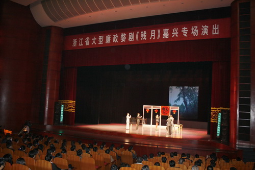 11月30日,浙江省大型廉政婺剧《残月》在嘉兴大剧院进行专场演出,市领导武亮靓、徐鸣华、张志伟、金锦根等出席活动。