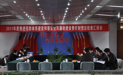 12月27日上午,由市委常委、市纪委书记徐鸣华带队,市纪委副书记沈秋明以及“两代表一委员”、民主党派特邀成员等组成的检查组,对嘉兴港区2011年度推进惩防体系建设和落实党风廉政建设责任制情况进行了检查指导。
