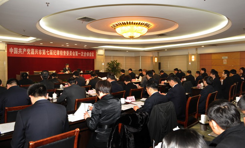 2月23日下午,新选举产生的中共嘉兴市第七届纪律检查委员会召开第一次全体会议。31名委员出席会议。徐鸣华同志主持会议并讲话。