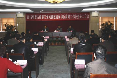 3月22日下午,市委、市政府召开2012年度市级部门党风廉政建设和反腐败工作任务分工会议。市委常委、市纪委书记徐鸣华出席会议并讲话。