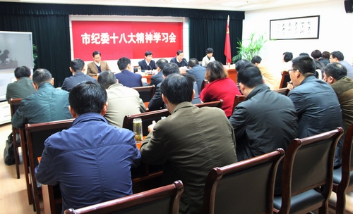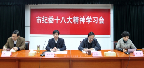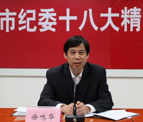 11月20日上午,市纪委召集全体机关干部和县(市、区)纪委书记学习传达贯彻党的十八大精神。市委常委、市纪委书记徐鸣华出席会议并讲话。