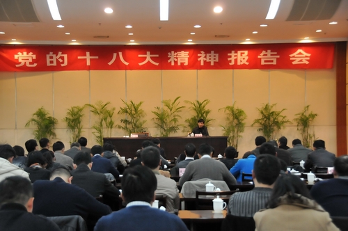 12月25日下午,市委常委、市纪委书记徐鸣华赴海宁市宣讲党的十八大精神,海宁市委中心学习组全体成员以及各镇(街道)、市级机关各部门(单位)主要负责人等200余人参加了报告会。