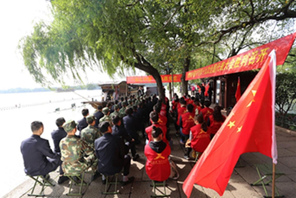 嘉兴南湖红船畔,干部群众代表集中观看党的十九大开幕会