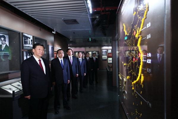参观结束时,习近平发表了重要讲话。他表示,我们全体中央政治局常委同志这次集体出行,目的是回顾我们党的光辉历程特别是建党时的历史,进行革命传统教育,学习革命先辈的崇高精神,明确肩负的重大责任,增强为实现党的十九大提出的目标任务而奋斗的责任感和使命感。