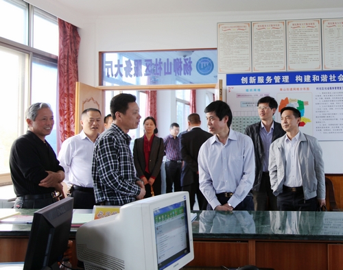徐鸣华一行实地调研了海盐县经济开发区建设情况,秦山街道杨柳山社区、武原街道河滨社区便民服务中心和居务监督委员会建设。