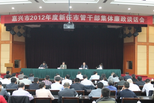 4月18日下午,我市召开2012年度新任市管干部集体廉政谈话会。市委常委、市纪委书记徐鸣华出席会议并讲话。徐鸣华强调,全体新任市管干部要紧紧围绕“为民、务实、清廉”,始终牢记为民宗旨,时刻坚持务实作风,处处保持清廉本色,做勤政廉政的表率,用实实在在的成绩向市委和全市人民交出一份满意的答卷,不辜负党的重托和人民的厚望,努力为推进嘉兴“三城一市”和“两富”现代化建设作出应有的贡献。