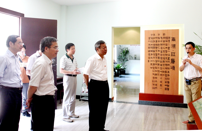7月22日上午,省委督导组组长徐宏俊一行到南湖红廉馆参观指导。徐宏俊参观了正在南湖红廉馆举办的“党的群众路线教育实践活动反‘四风’主题展”,仔细观看了馆内的展板图片和馆藏实物。