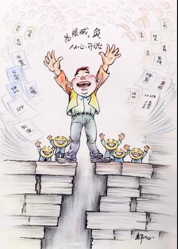 “我这幅《基层减负从心开始》,减负让基层的干部更加释放自我,减掉app、减少会议、减少上级检查,过去台账资料堆成山,现在从上至下给基层减负,让基层干部轻装上阵。”