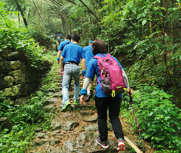 全体青年干部从日铸岭古道出发,翻山越岭,拾级而上,最终到达目的地金鱼村,全程12公里。
