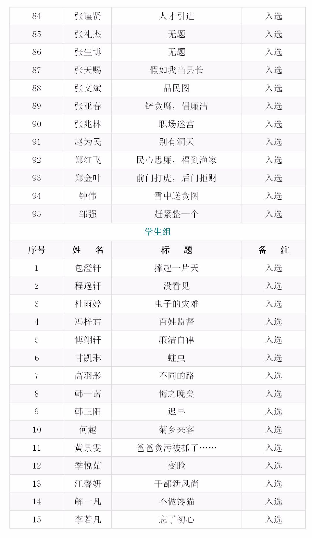 评审工作本着公开、公平、公正的原则,经评审委员会严格的初评、复评,最终评选出143件作品。其中成人组95件,学生组48件。