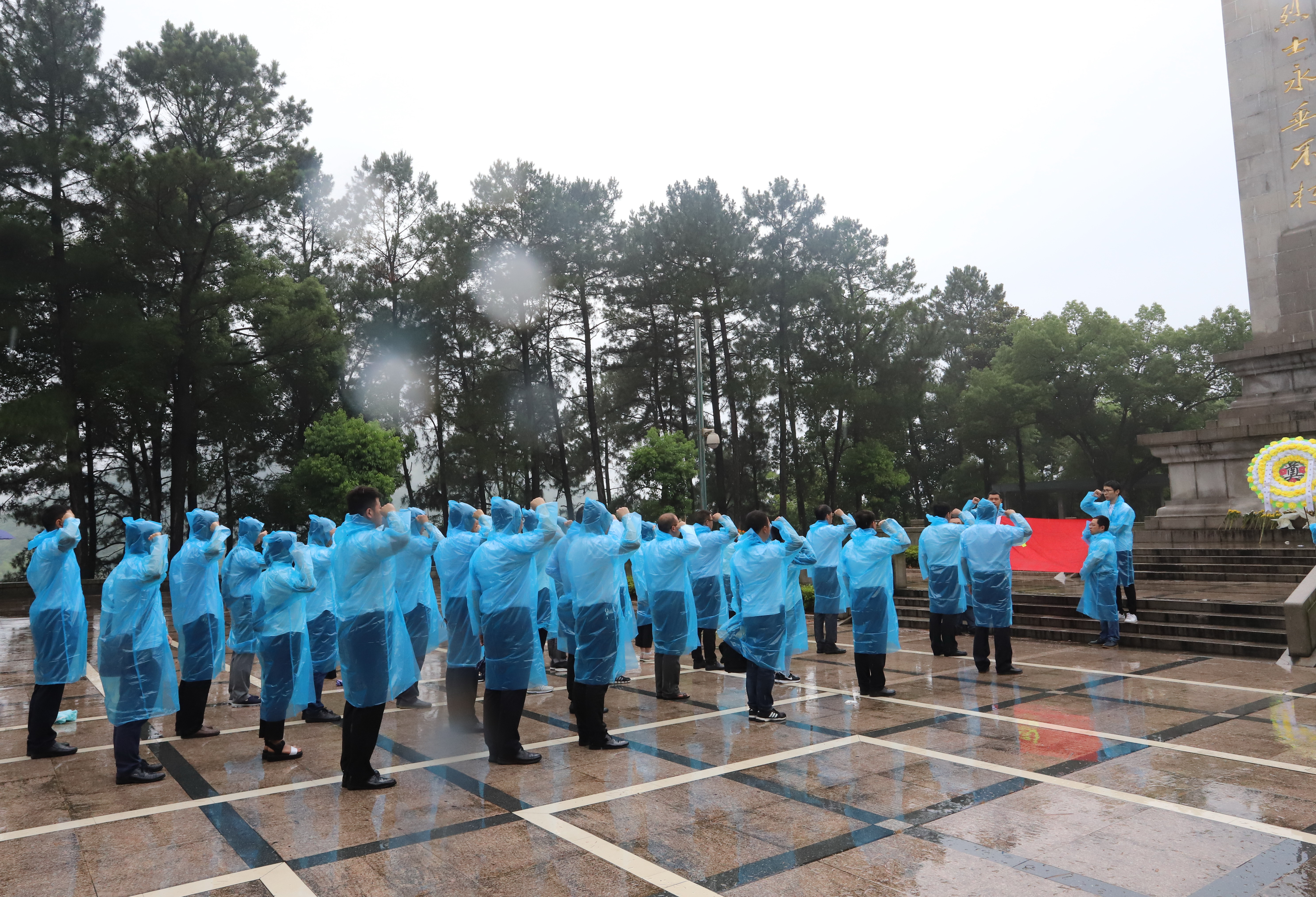 在四明山革命烈士纪念碑前,全体党员排着整齐的队列,神情肃穆,踏雨前行,向纪念碑敬献鲜花,重温入党誓词,瞻仰纪念碑,接受了一次镌骨铭心的革命教育和一次触及灵魂的政治洗礼,全体党员过了一次严肃认真的组织生活。
