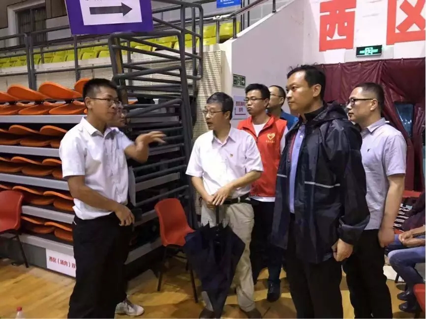 市监委委员郑美良带领第五督查组在桐乡六中体育馆安置点了解当地群众安置情况。