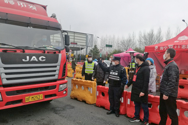 2月14日下午,在嘉绍高速硖石出口,一辆挂着沪A牌照的货车缓缓驶入绿色通道,缴费、驾驶员测体温、查验身份信息,整个过程不超过半分钟。