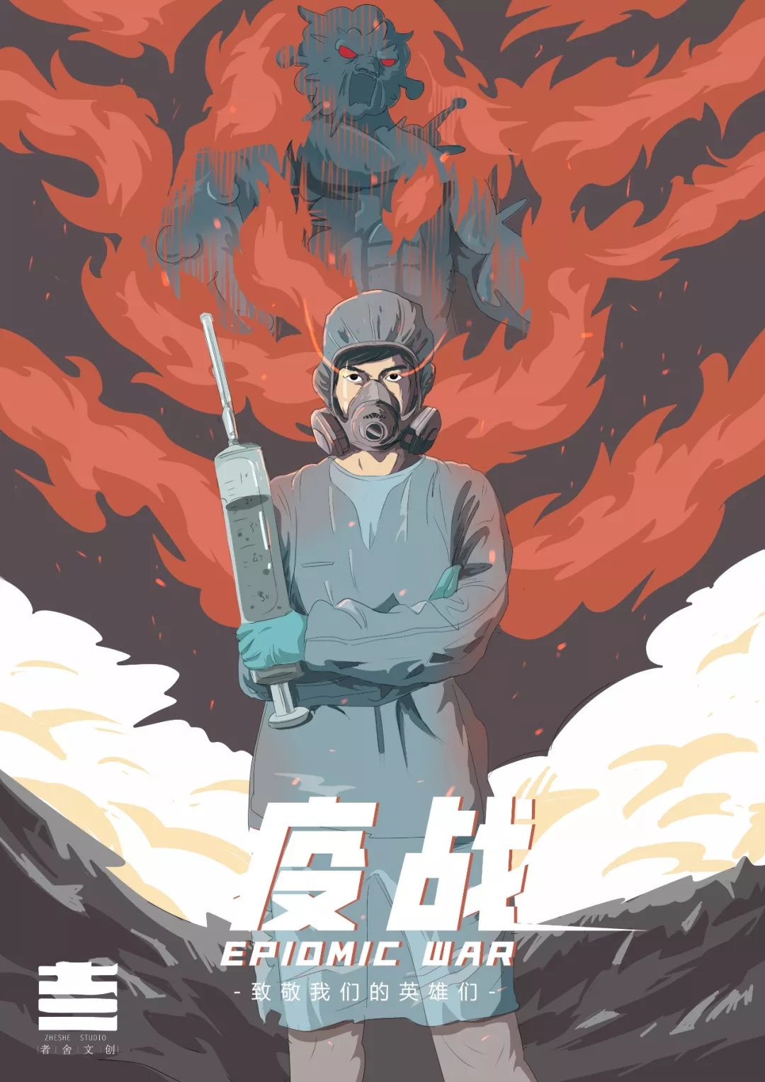 《战疫联盟》《逆行者》《致英雄》……每一幅都有一个动人事迹,都是他和朋友付诸心血的作品。