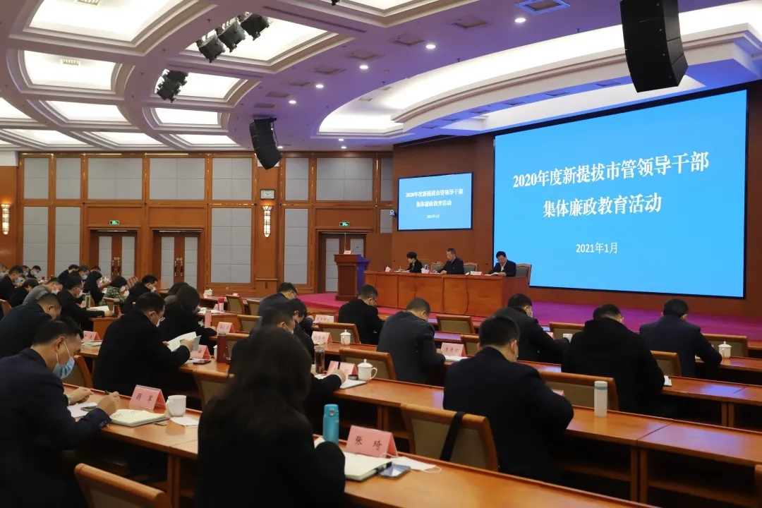 1月15日,嘉兴市纪委市监委开展2020年度新提拔市管领导干部集体廉政教育活动。市委常委、市纪委书记章建通出席活动,并对与会人员提了期望。