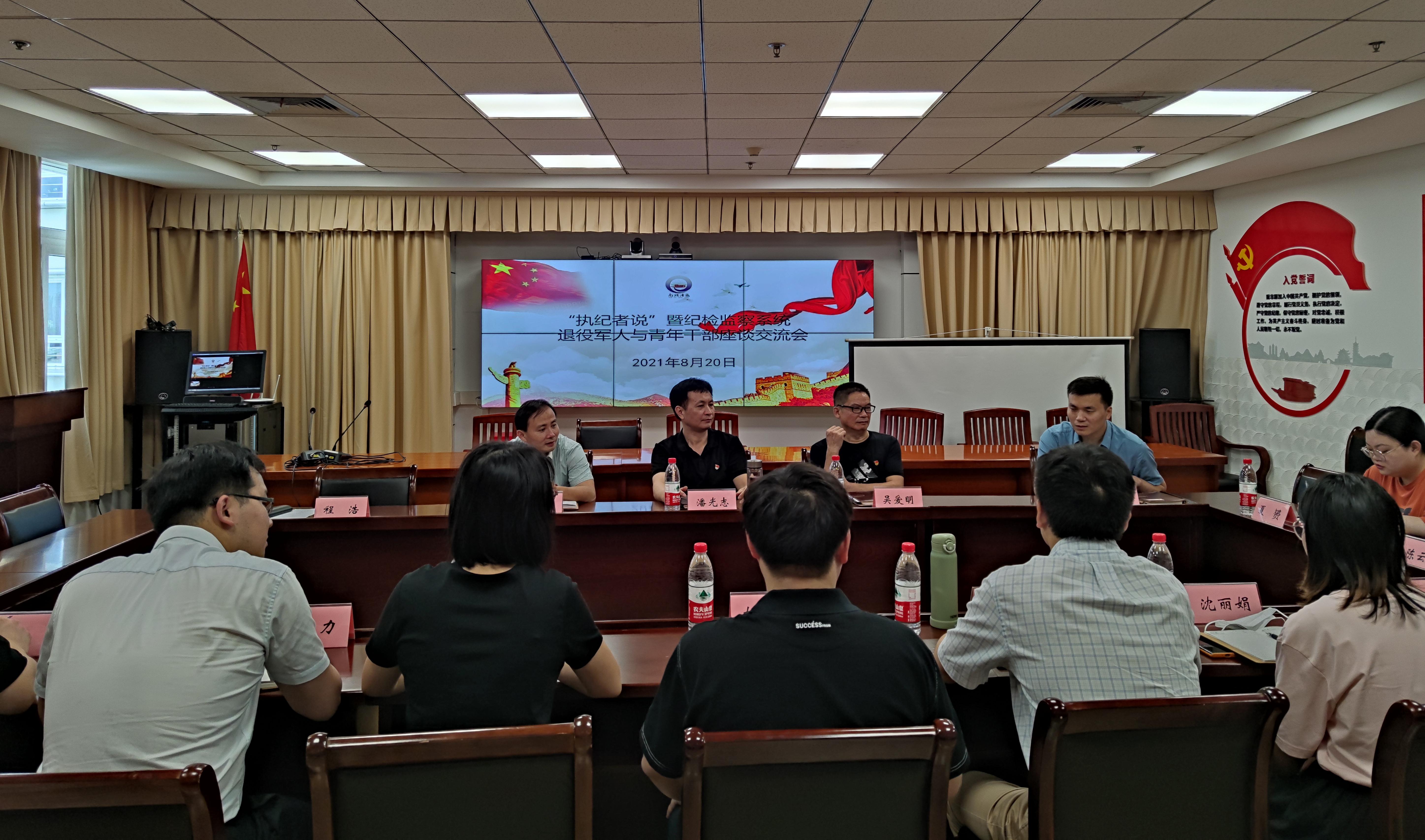 为进一步增强退役军人自身荣誉感,增进纪检监察系统年轻干部对退役军人的了解和胸怀“国之大者”的使命感、责任感,更好地为纪检监察事业发展贡献智慧和力量,8月20日上午“执纪者说”暨纪检监察系统退役军人与青年干部交流会在市纪委召开,市纪委市监委退役军人代表和年轻干部代表参加活动。