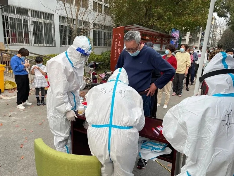 赵晓彤是平湖市纪委市监委一名退居二线的老同志。3月13日下午14时,她一接到单位电话就立即从嘉兴赶回单位,参加所在社区的志愿服务。下午15时,52周岁的她又穿上了厚厚的防护服,投入到检测采样工作中。次日凌晨1时20分,简单吃了几块饼干后,她又开始挨家挨户上门,协助检测采样,为居家隔离人员配送生活物资等,累了就在桌子上趴一会……