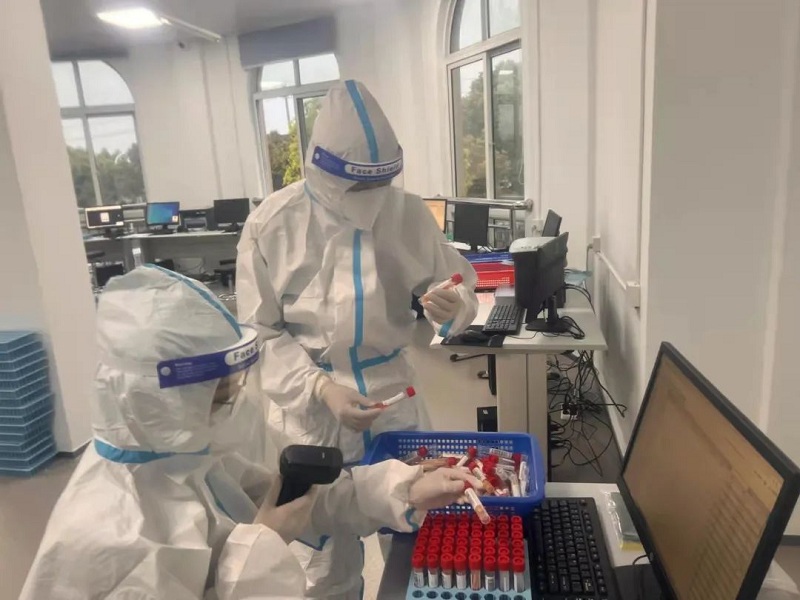 “这批标本是姚庄来的,需要加急,用蓝色表格……”这项工作需要直接接触核酸检测标本,为了能以最快的速度为前方提供准确的数据,屠晓波很快克服了紧张情绪,配合医务人员将一罐罐核酸检测标本从样品袋中取出,迅速码放整齐并将信息准确录入核酸检测筛查信息系统。