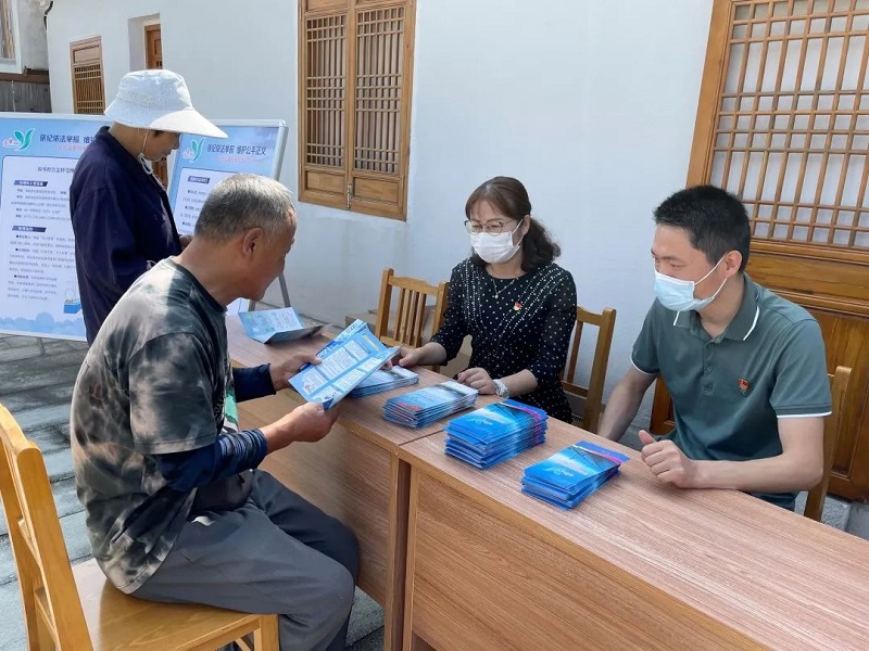 嘉善县纪委县监委围绕“依纪依法举报 维护公平正义”主题,通过走进广场、走进机关、走村入户等方式开展纪检监察信访举报政策宣传活动,打通群众监督“最后一公里”。图为纪检监察干部向群众发放宣传册并开展宣传。