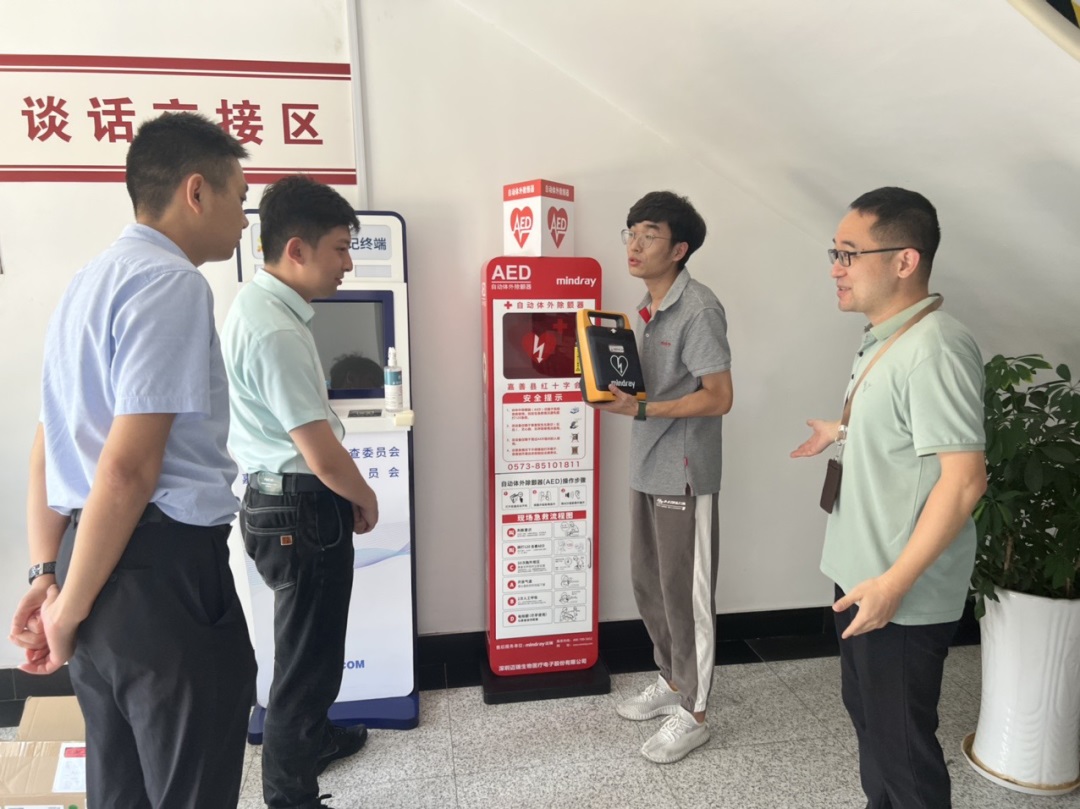 钱晓唯始终把加强“走读式”谈话安全监管作为首要职责,带领科室同志建立并完善“走读式”谈话审批流程和安全制度。图为钱晓唯(右一)在谈话场所组织办案人员学习急救设备。钟维佳 摄