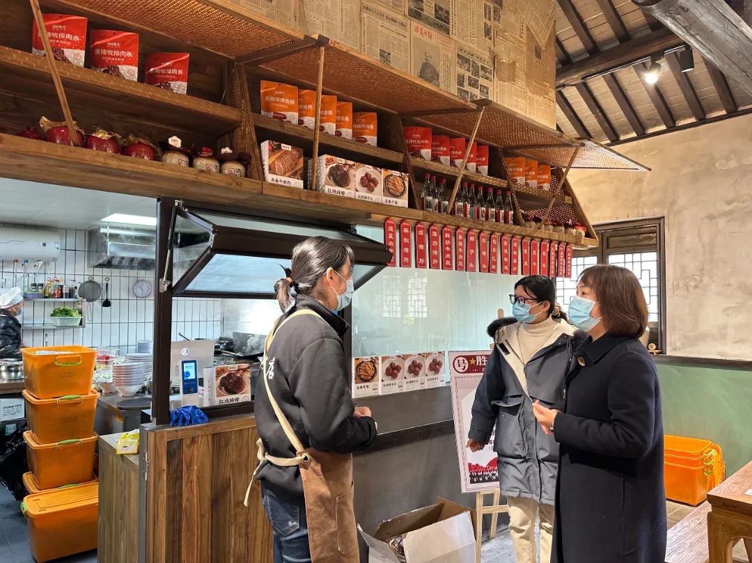 在老街改造过程中,沈荡镇纪委监察办充分发挥群众身边监督员的作用,收集、上报、回访“一站式”监督服务护航老镇焕新颜。图为纪检监察干部走访胜利饭店,听取意见建议。姜林美 摄