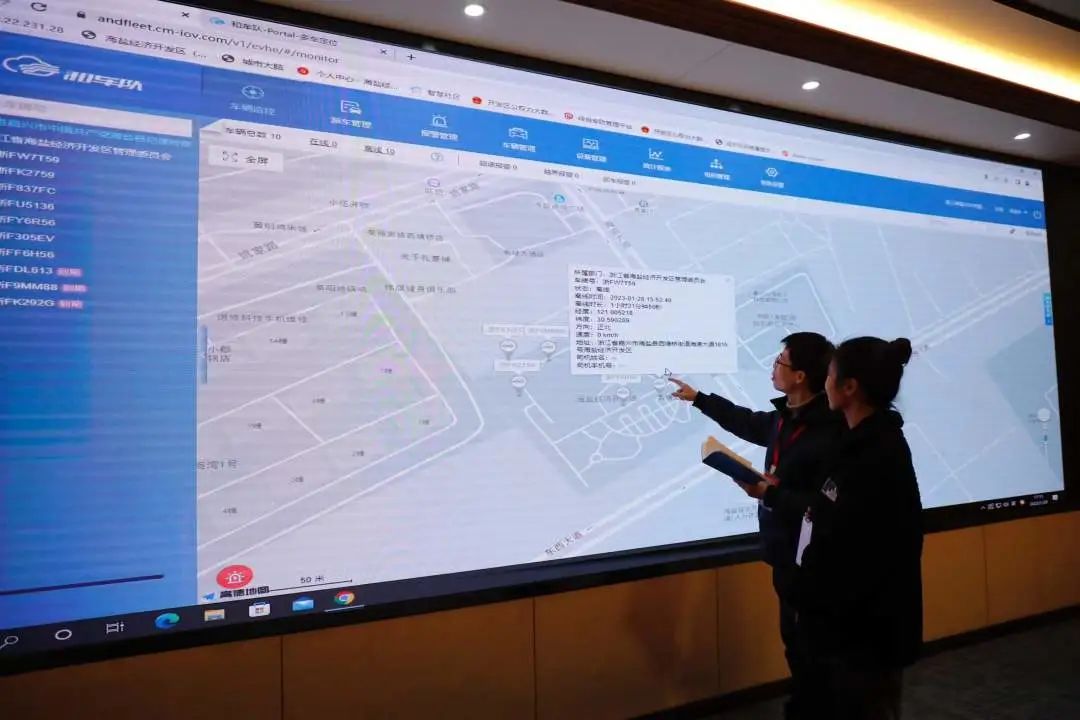 海盐经济开发区(西塘桥街道)纪工委创新“四风”监督方式,通过数字化监督严防“车轮上的歪风”,推动中央八项规定精神落到实处。图为纪检监察干部通过查看车辆定位信息,分析研判公务用车情况。杨晓文 摄