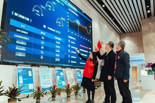 海盐县纪委监委聚焦营商环境优化提升“一号改革工程”,以“改进作风、狠抓落实”为要求,构建“自主+联合”“明访+暗访”常态化监督模式,集中整治影响营商环境的“吃拿卡要”“中梗阻”等干部作风问题,以强有力的监督执纪推动营商环境持续优化。图为该县纪检监察干部通过电子屏幕了解政务服务满意度情况。王奕燕 摄