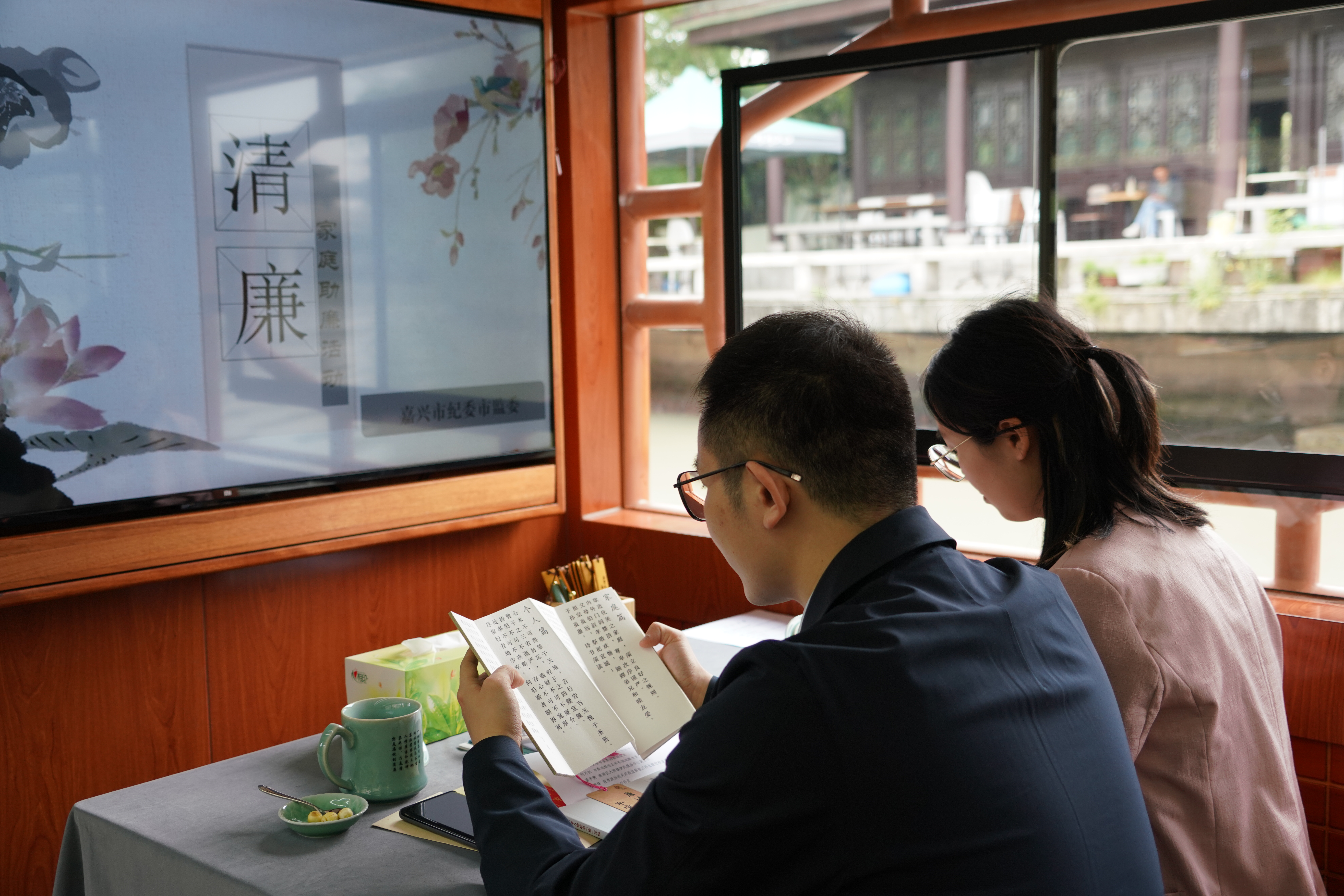 在九水巴士“清芬号”上观廉影、品廉茶、赠家书