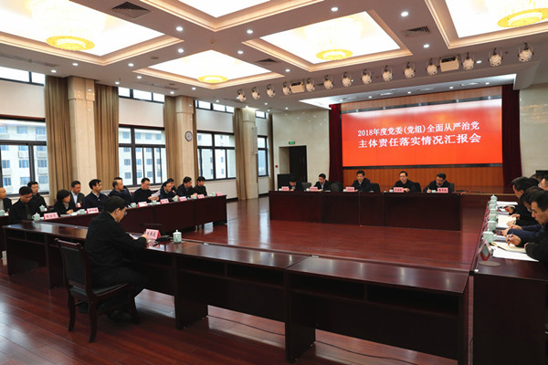 2月15日,省委常委、省纪委书记、省监委主任任振鹤主持召开2018年度党委(党组)全面从严治党主体责任落实情况汇报会,组织省纪委省监委班子成员和部分省纪委委员等,逐一听取温州、绍兴和省建设厅、浙商银行党委(党组)主要负责人报告党委(党组)履行主体责任、“一把手”履行第一责任人职责和个人廉洁自律情况,当场反馈评议意见,有针对性地指出存在问题和不足,提出改进工作的意见。