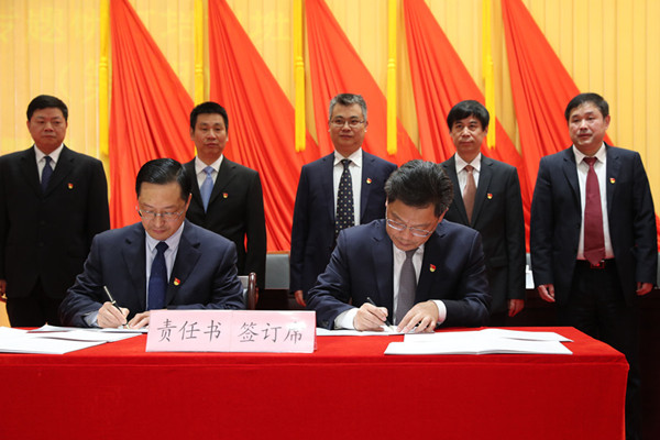 省委常委、省纪委书记、省监委主任任振鹤与各市纪委书记、监委主任签订2019年党风廉政建设责任书