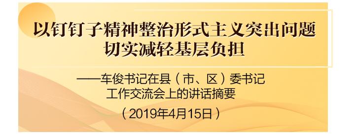 这次县(市、区)委书记工作交流会以“整治形式主义突出问题、切实减轻基层负担”为主题,主要是基于3点考虑:第一,这是中央提出的一项重要政治任务。党的十八大以来,以习近平同志为核心的党中央高度重视党的作风建设,从关系党的生死存亡、关乎人心向背的高度,以抓铁有痕、踏石留印的韧劲与形式主义等“四风”问题作坚决斗争,取得的重大成就有目共睹、有口皆碑。前不久,习近平总书记专门作出重要指示,强调2019年要解决一些困扰基层的形式主义问题,切实为基层减负。上个月,中办专门印发了《关于解决形式主义突出问题为基层减负的通知》,并将2019年确定为“基层减负年”。中央有要求,浙江就要有行动。全省上下必须从“中国革命红船起航地、改革开放先行地、习近平新时代中国特色社会主义思想重要萌发地”的高度,切实担负起这个重大政治责任,回答好整治形式主义突出问题、切实减轻基层负担这道政治必答题。第二,这是要传递一个强烈信号。这些年来,省委大力倡导理性担当、真抓实干的工作导向,以深化“最多跑一次”改革、开展“大学习大调研大抓落实”活动为重要载体和抓手,深入整治形式主义、官僚主义等“四风”问题,形成了持之以恒抓作风、转作风、正作风的良好环境。但我们要清醒地看到,形式主义的顽疾在我省各地各部门都或多或少存在,这与习近平总书记赋予浙江的新期望是不相符合、水火不容的,也是对我省“两个高水平”建设的一大阻碍。我们希望通过这次县(市、区)委书记工作交流会,进一步统一思想,把全省上下动员起来、组织起来,对形式主义再宣战再亮剑,对切实减轻基层负担再深化再推动,使我省开展的“服务企业服务群众服务基层”活动更深入更有效。第三,这也是借此作出一份庄严承诺。对于整治形式主义突出问题、切实减轻基层负担,省委是下了决心的,也是动了真格的。前不久,我们在深入调研、广泛听取基层意见的基础上,出台了浙江减轻基层负担“二十条”,可以说条条都是干货实货、条条都是奔着问题去的,条条都是对基层呼声的回应。这“二十条”能不能落到实处,基层干部都非常关注、人民群众都看在眼里。这次县(市、区)委书记工作交流会明确这个主题,就是要让基层干部和群众更加深切地感受到省委是言出必行、说到做到的,不达目的是决不收兵的。
