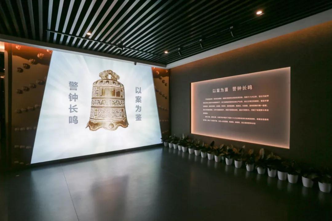 走进展厅,纪法威严的气息扑面而来。位于展厅入口的木雕作品《百廉图》,以不同的书法字体凿刻出千姿百态的“廉”字,围绕着“清廉浙江”印章。过道墙上设置的一局未下完的棋盘,暗含“一着不慎、满盘皆输”。整个展厅的各种细微之处无不向来访者传递着警示信息。