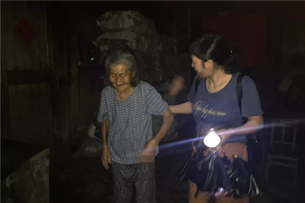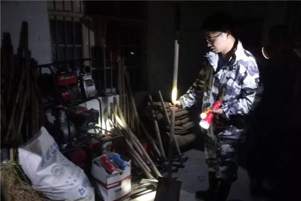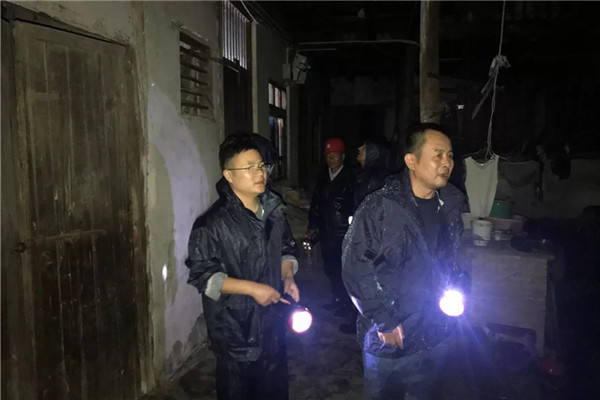 武义县新宅镇纪检监察办党员干部连夜深入一线抗台,走村入户检查危旧房,并帮助转移危旧房百姓。