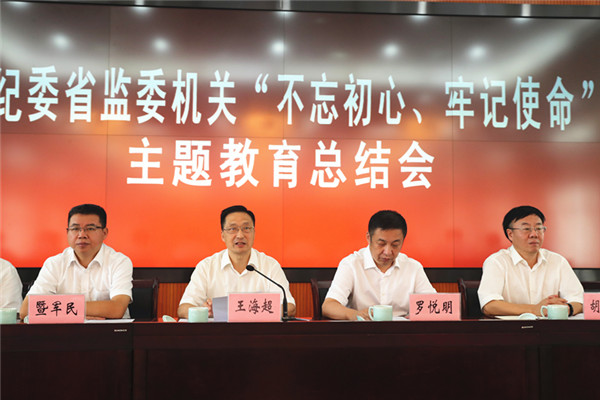 9月12日下午,省纪委省监委机关召开“不忘初心、牢记使命”主题教育总结会。省纪委常务副书记、省监委副主任、委机关“不忘初心、牢记使命”主题教育领导小组常务副组长王海超主持会议并讲话。