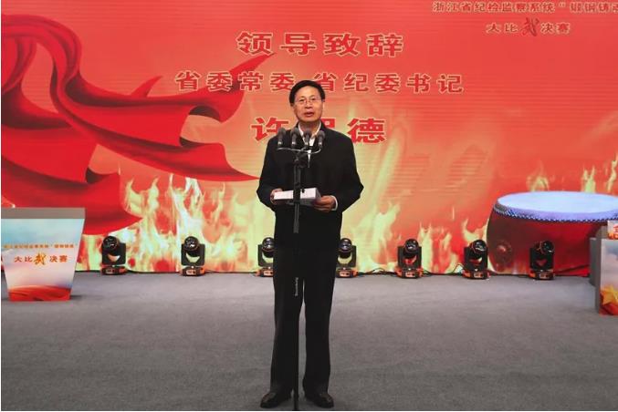 10月16日上午,省纪委省监委举行全省纪检监察系统“锻钢铸魂”大比武决赛。省委常委、省纪委书记许罗德出席并致辞。省纪委省监委机关、各市纪委市监委和省属企业、高校纪检监察机构共14支代表队参赛。省纪委省监委领导班子成员,委机关和派驻机构全体干部,各市纪委市监委和省属企业、高校纪检监察机构主要负责人,以及各赛区观众代表共650余人到场观赛。