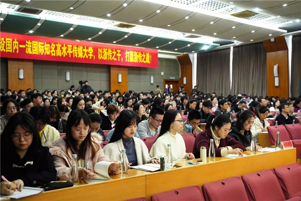 浙江传媒学院领导班子成员、职能部门和二级学院负责人代表、教授、师生代表等350余人聆听了宣讲会。