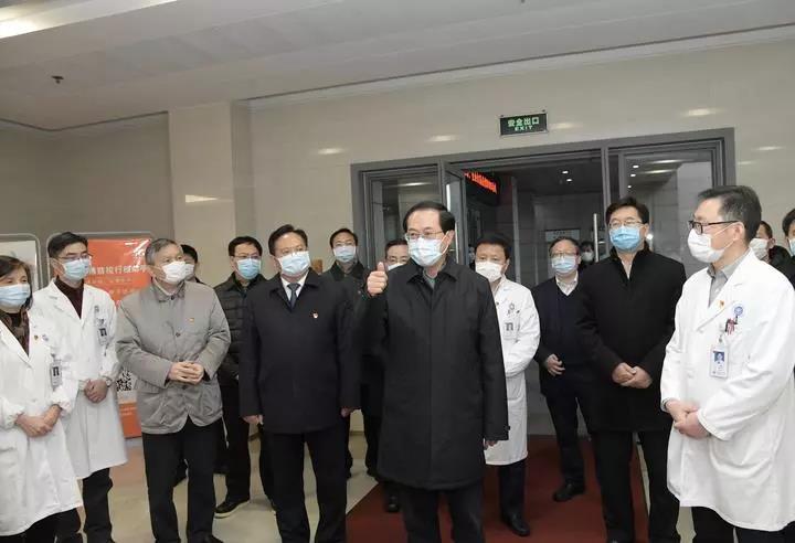 在嘉兴市第一医院,省委书记车俊详细了解新冠肺炎病人救治情况。记者梁臻摄