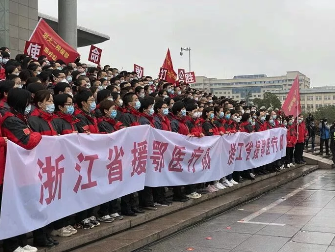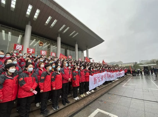 今天上午,浙江省第四批援助武汉医疗队集结出征,参与武汉市新冠肺炎重症、危重症病人的医疗救治工作。出征前,省委书记车俊、省长袁家军等省领导在杭州为队员们送行。