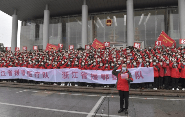 省人民大会堂东大门前,战旗猎猎,453名白衣战士集结待发,个个精神饱满、斗志昂扬。他们是由浙大一院、浙大二院、浙大邵逸夫医院为主,整合部分市县抽调的医务人员组建而成。加上此前驰援的多批次医疗队和专家组,目前我省共派出支援湖北医务人员1698名。