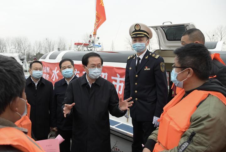 2月21日,省委书记车俊在太湖航线湖州段督查疫情防控和复工复产工作。浙江在线记者 梁臻 摄