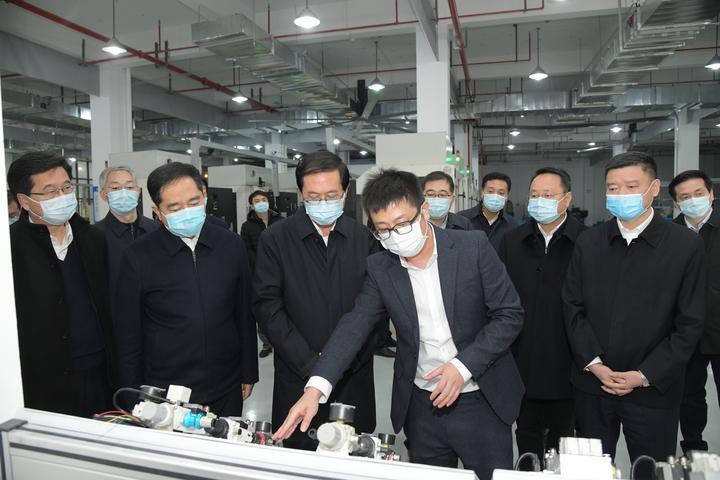 2月21日,省委书记车俊来到湖州高新区科创园藤卓智能科技公司,检查复工复产情况。浙江在线记者 梁臻 摄