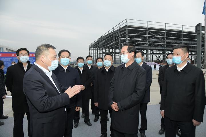 总投资100亿元的万邦德绿色智造新材料产业园,是省级特别重大产业项目,现场数十台大型机械和数百位工人正在紧张作业,目前3个车间主体结构已基本完成,计划5月正式投产。车俊说,新材料是我省着力培育的战略性新兴产业,绿色智能是我省制造业高质量发展的主攻方向,推进这一重大项目对推动当地稳增长调结构、转动力增后劲、补短板优供给具有重要牵引作用。希望产业园着眼功能布局完善建设规划,突出行业特点做好整体设计;有关部门要提供精准服务、加强要素保障,确保项目早日投产见效,把疫情延误的时间夺回来。