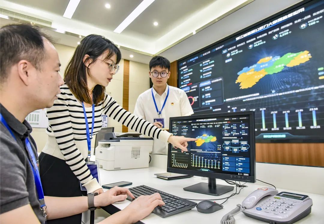 金华市婺城区纪委监委聚焦村级事务规范化运行,将基层公权力大数据监督应用大数据碰撞、对比、预警的问题信息,交由各村级监察工作联络站接单跟进监督,激活村级监督“神经末梢”,数字赋能提升基层监督质效。图为当地纪检监察干部在应用驾驶舱内查看村级高频事项模块状况。金华市婺城区纪委监委 吴敬连 摄